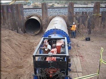 Наша компания занимается прессо-шнековым бурением по всей России. Мы используем в своих работах современное оборудование American Augers 42-600 для прокладки стальных футляров (обсадных труб) под автомобильными и железными дорогами наружным диаметром ( Ø ) 720 - 1220 мм, длиной до 100 метров. Выполняем сварочные работы полиэтиленовых труб диаметром до 1000 мм.